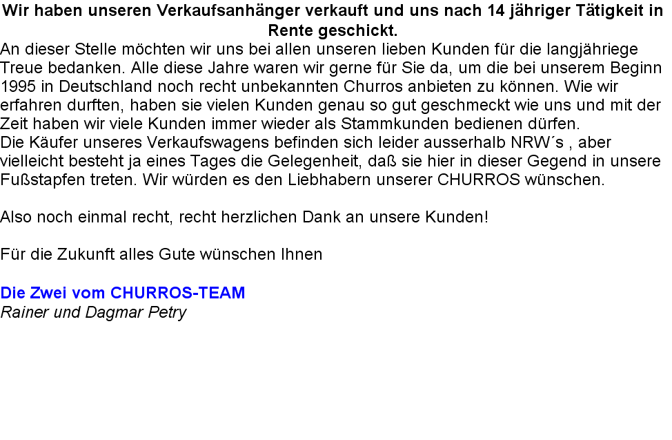 weiterhin für unsere Kunden Churros anbieten können, da diese nach wie